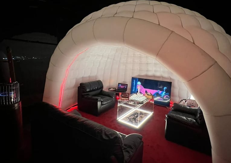 إن الفكرة بسيطة وممتعة في نفس الوقت. يمكنكم حجز خيمة خاصة بكم ومشاهدة فيلم مع آلة فشار، وكأن لديكم سينما خاصة. كل خيمة تتسع من شخصين إلى 14 شخصاً، لذلك فهي مناسبة للجلسات الصغيرة أو تجمعات الأصدقاء.